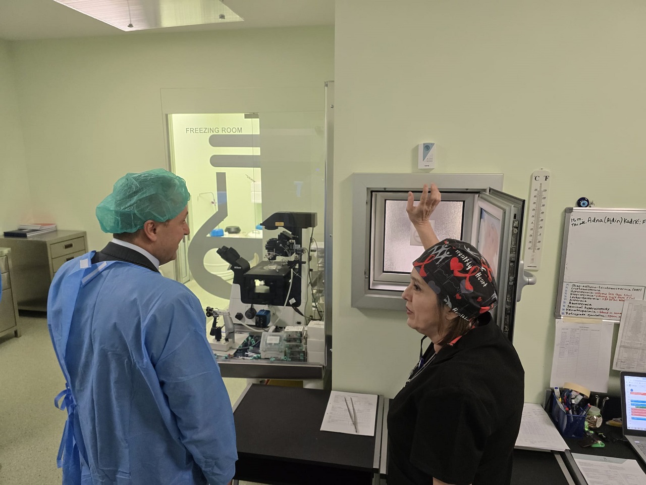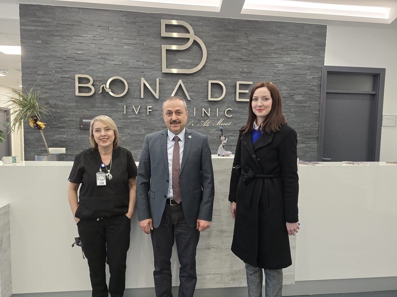 On Tuesday, February 11, 2025, the Rector of the International University of Sarajevo (IUS), Prof. Dr. Ahmet Yıldırım, and the Dean of the Faculty of Engineering and Natural Sciences (FENS), Assoc. Prof. Dr. Altijana Hromić-Jahjefendić, visited the Bona Dea Health Center in Sarajevo. They were welcomed by Dr. Ali Mesut and Dr. Nursen Mesut, who provided a comprehensive tour of the clinic and detailed insights into their trials. Under the leadership of Dr. Ali Mesut, a specialist in gynecology and reproductive health, and Dr. Nursen Mesut, a senior embryologist, the clinic has achieved significant success in assisting couples facing infertility challenges.