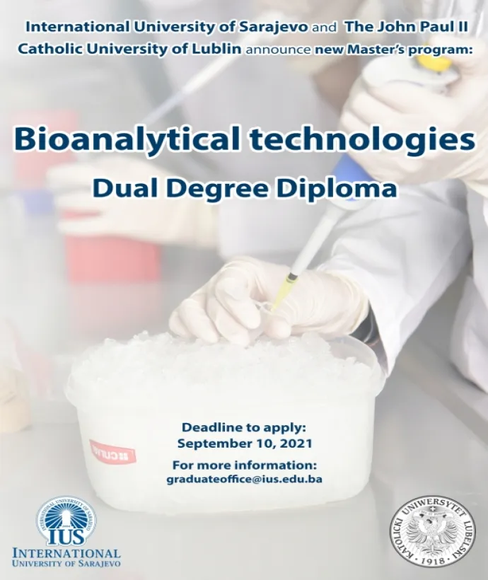 Second cycle student of the Genetics and Bionegineering study program, Ms. Azra Karić, will defend her master thesis titled “Assessment of Protein Binding Prediction Tools”.