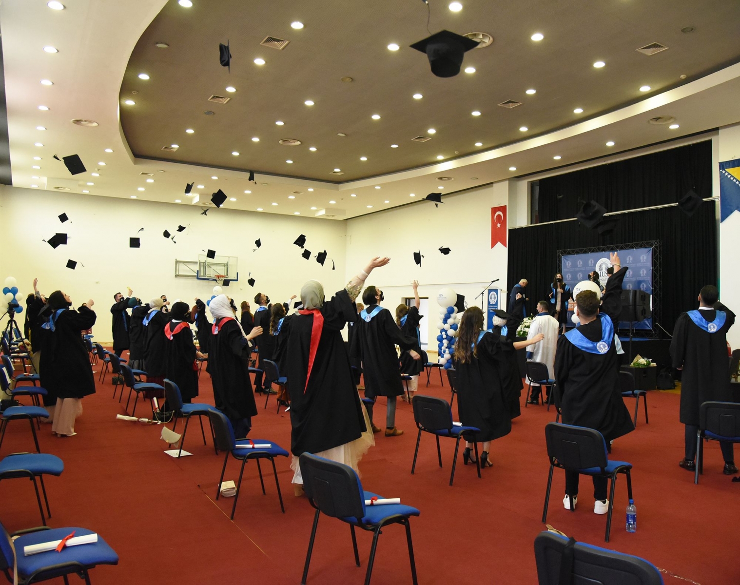 25 Haziran 2021 Cuma günü, Uluslararası Saraybosna Üniversitesi, 13. dönem mezunları için bir mezuniyet töreni düzenledi. Üniversite, COVID-19 pandemisinin getirdiği tüm önemleri alarak töreni 4 ayrı oturumda gerçekleştirdi. Açılış konuşmasını IUS Rektörü Prof. Dr. Ahmet Yıldırım gerçekleştirdi. Sayın Yıldırım, Mezunları olağanüstü koşullar altında elde ettikleri başarılarından dolayı kutlayarak, hayatta hiçbir güzel şeyin kolay olmadığını ve en güzel şeylerin emek gerektirdiğini söyledi. Eğitim sektörünün pandemi nedeniyle karşılaştığı zorluklara değinen Sayın Rektör, IUS'un bu beklenmedik duruma çok hızlı tepki verdiğinin ve çok kısa sürede tüm eğitim faaliyetlerini online ortama taşıyarak, çok az üniversitenin başarabileceği bu üç dönemi kesintisiz tamamlayabildiğinin altını çizdi.
