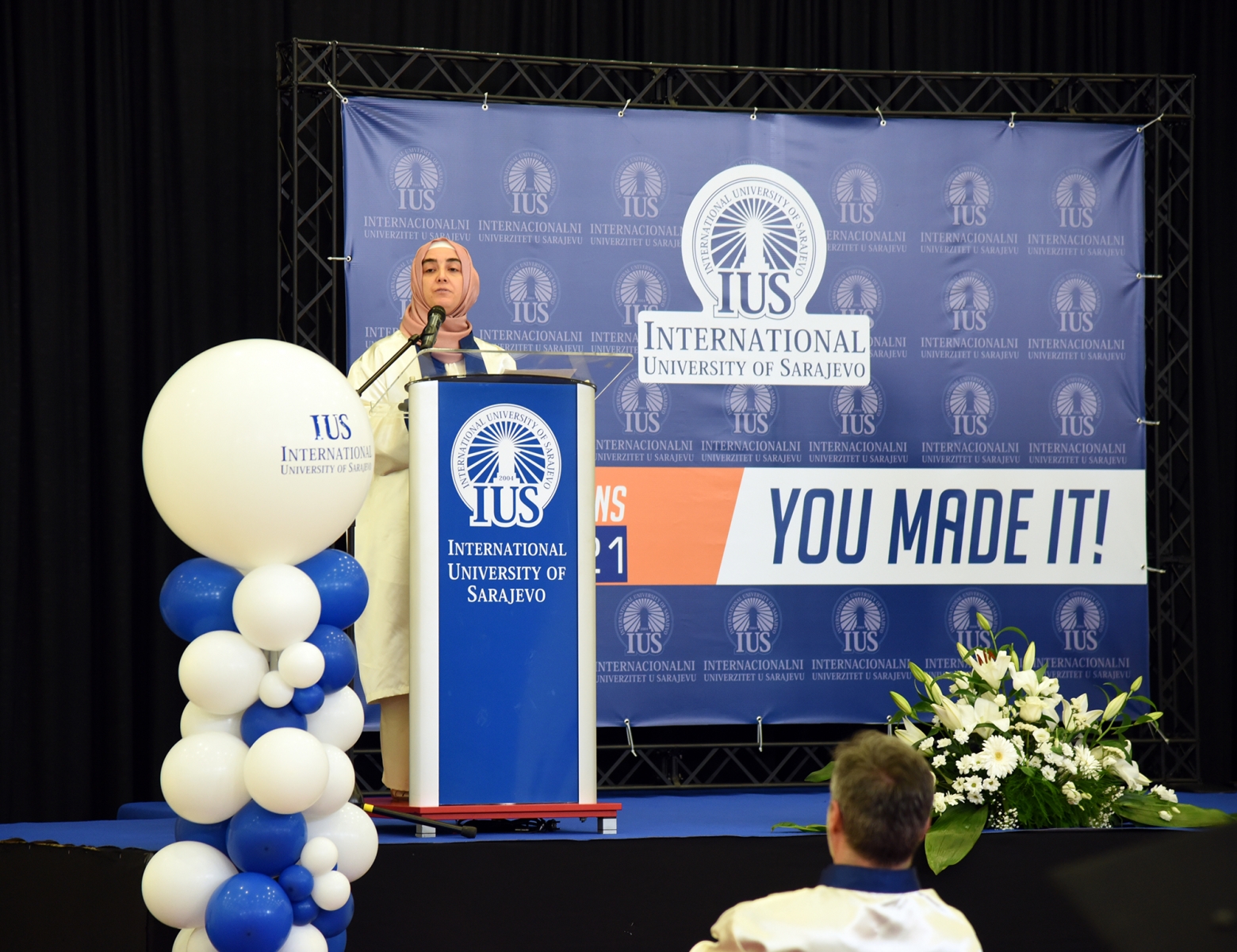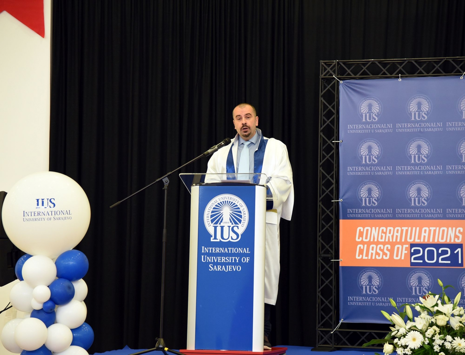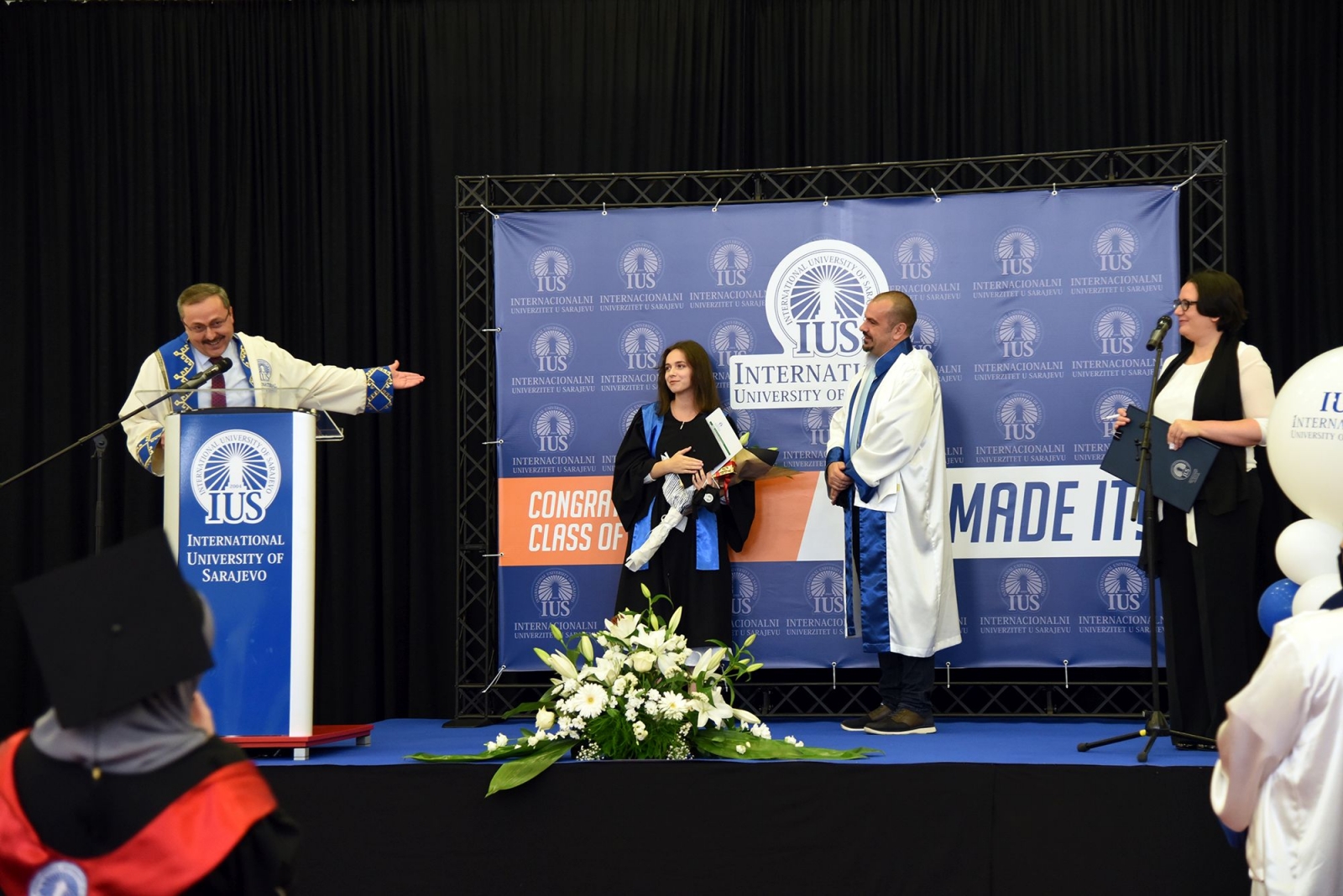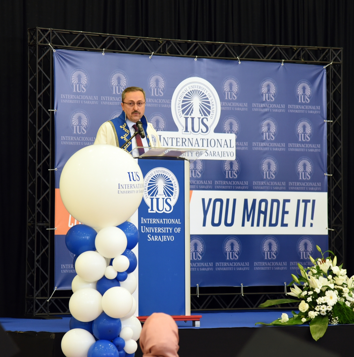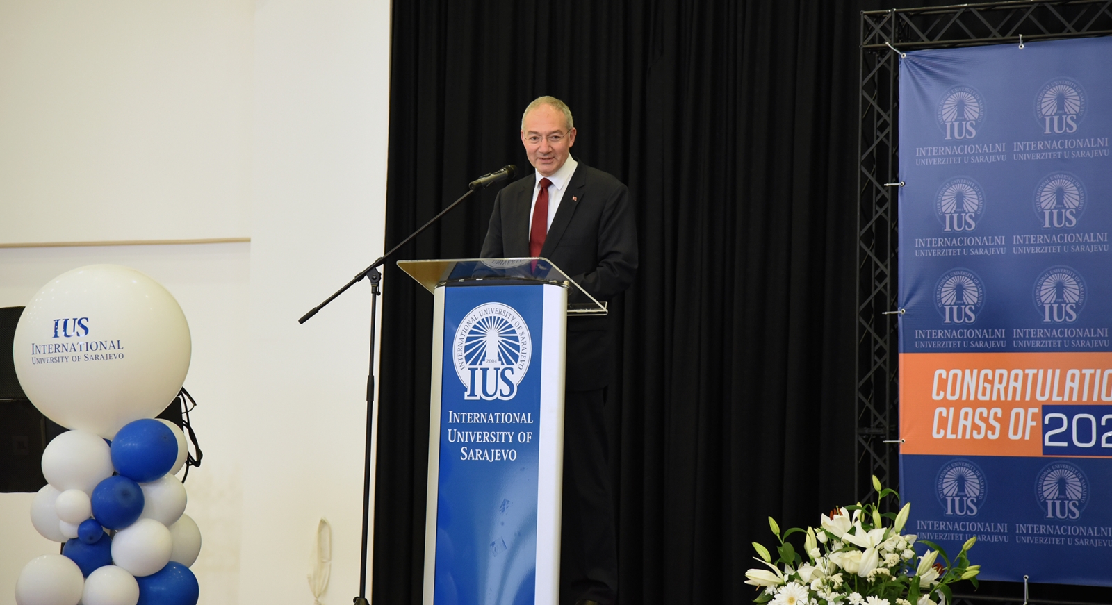 Rektör, mezunları kendilerine güvenmeye, cesur olmaya ve edindikleri bilgilerle yeni bir dünyada insanlığa hizmet etmeye teşvik etti ve “Belki de çoğunuz bunların tarihi anlar olduğunu henüz anlamadınız ve kendi benzersiz tarzınızla tarih yazdınız” dedi. Son olarak tüm öğrencilere, ailelerine, IUS'taki akademik ve idari personele teşekkür eden Rektör, IUS'un başarısında SEDEF Vakfı ve Mütevelli Heyeti'nin desteğinin çok önemli olduğunu da vurguladı. Ayrıca törene Türkiye Cumhuriyeti'nin Bosna Hersek Büyükelçisi Sadık Babür Girgin katıldı ve öğrencilere bir motivasyon konuşması yaptı.